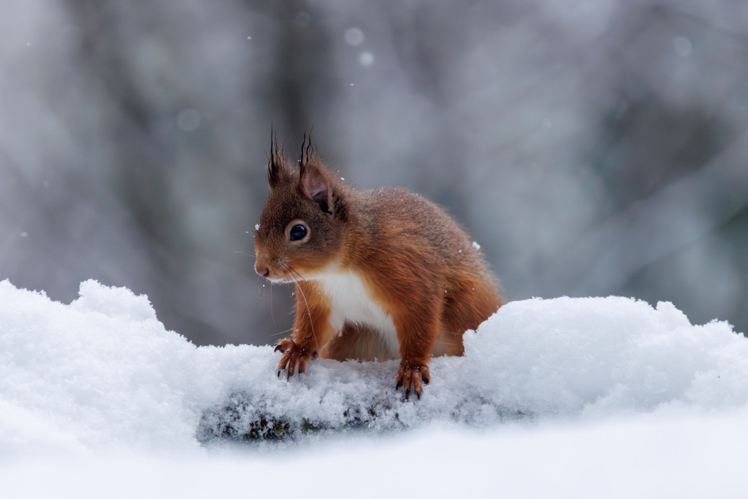 Throughout our days in the field, we encountered a wonderful variety of Highland wildlife. The Red Deer, majestic against the snowy woodland backdrop, the charming Red Squirrels with their distinctive ear tufts, and the delicate Snow Buntings were all incredible subjects.