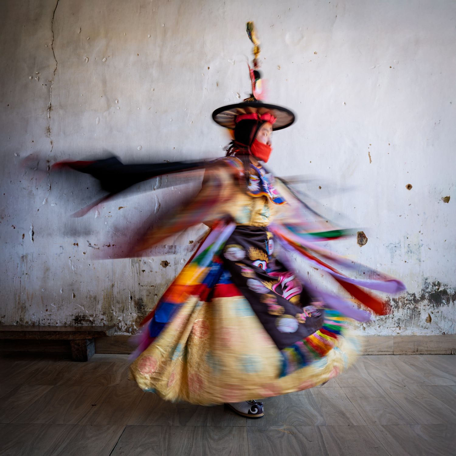 What awaited us inside was something truly special – monks dressed in elaborate traditional costumes performing sacred dances just for our group. Their silk brocade robes swirled in brilliant colors of red, gold, and blue as they moved through the ancient choreography. The masked dancers embodied deities and spirits, telling stories of good triumphing over evil, of protection and blessing.