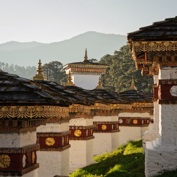As late afternoon approached, we arrived at Dochula Pass, sitting at 3,100 meters (10,200 feet). This mountain pass is famous for two things: its 108 chortens (stupas) built in memory of Bhutanese soldiers, and its absolutely spectacular views of the eastern Himalayas.