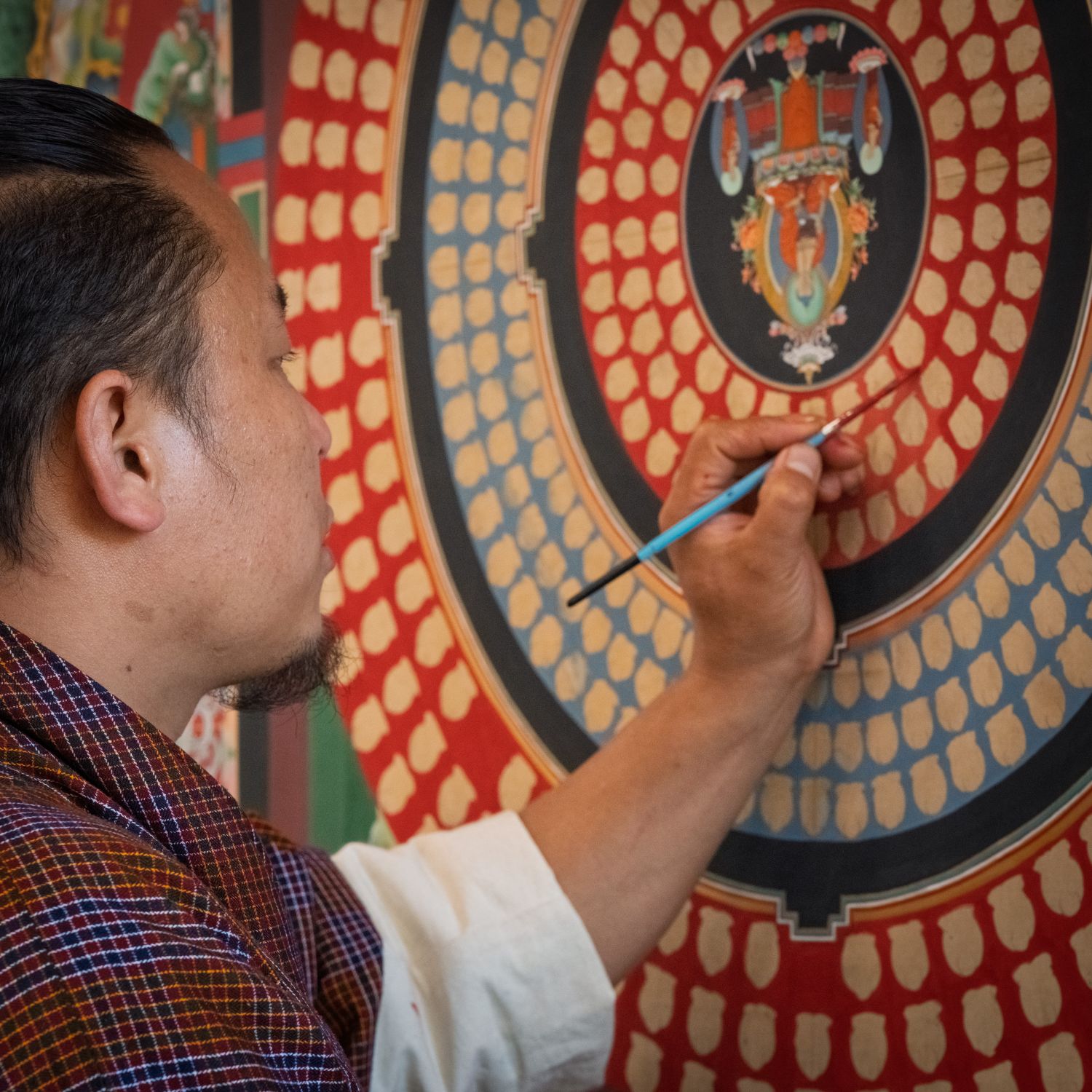 We left Thimphu after a fascinating morning visit to the National Institute for Zorig Chusum, where Bhutan's traditional arts are kept vibrantly alive. We watched weavers create intricate kiras at wooden looms, painters meticulously applying gold leaf to thangkas, and artisans crafting handmade paper from the bark of daphne trees using centuries-old techniques.