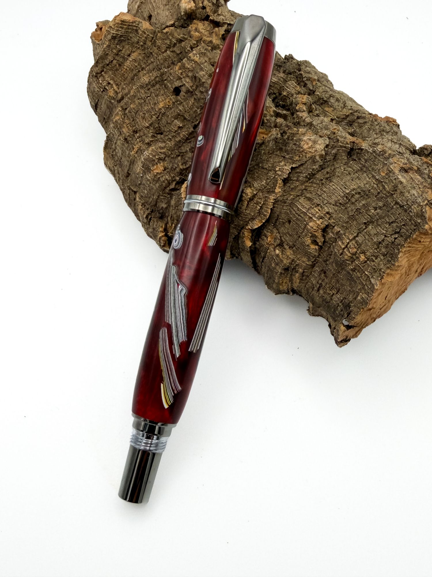 The three images really show off just how much this material changes as you move around the pen — which is part of what makes it so special. Every viewing angle is a slightly different story.